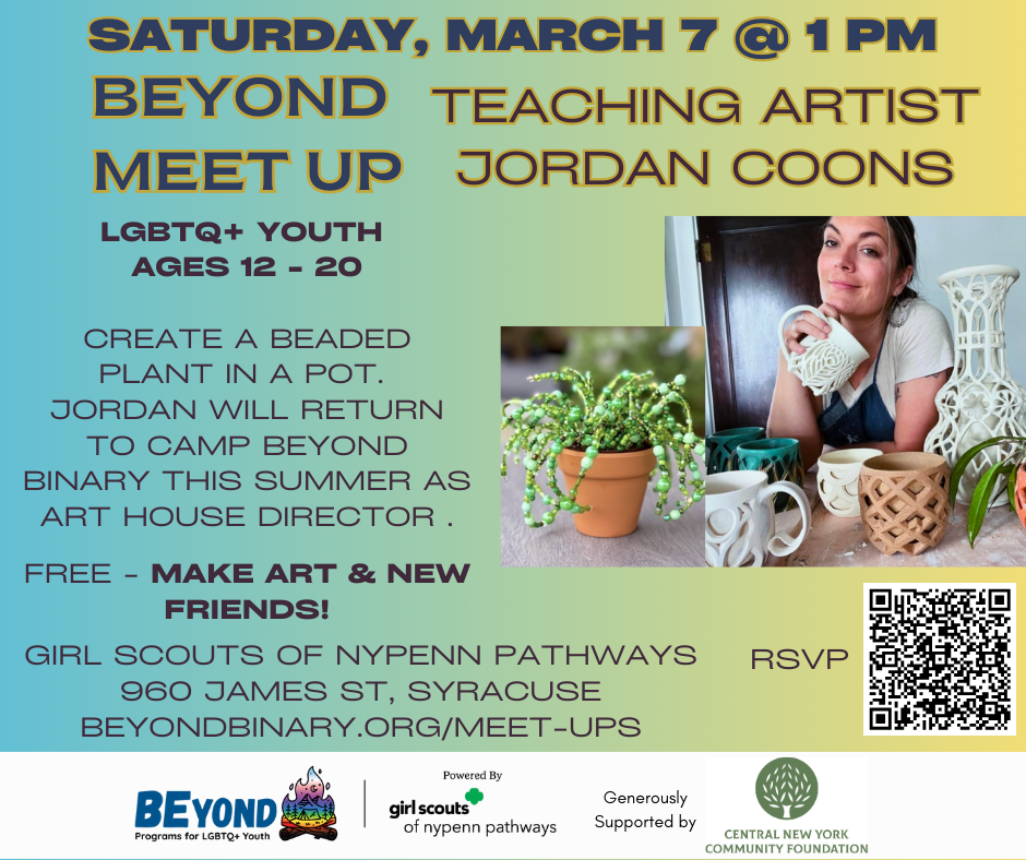 “Beyond the Q” is a partnership between Beyond and The Q Center at ACR Health, bringing LGBTQ+ youth and families together across Syracuse, Watertown, and Mohawk Valley. Together, we are stronger!